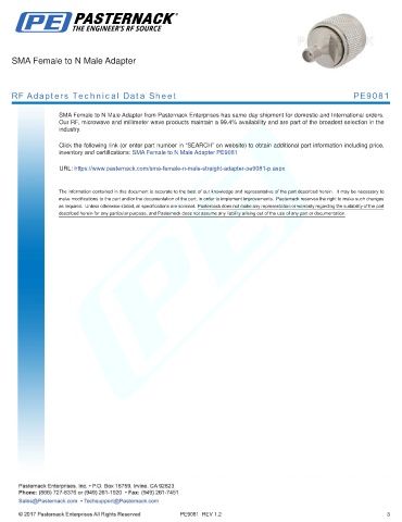 RF Adapters Technical Data Sheet PE9081