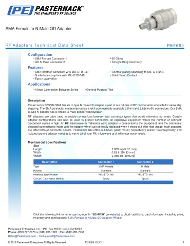 RF Adapters Technical Data Sheet PE9684