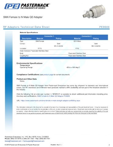 RF Adapters Technical Data Sheet PE9684