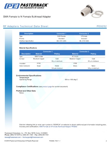 RF Adapters Technical Data Sheet PE9252