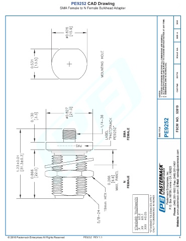 PE9252 CAD Drawing SMA Female to N Female Bulkhead Adapter PE9252 REV 1.1 4
