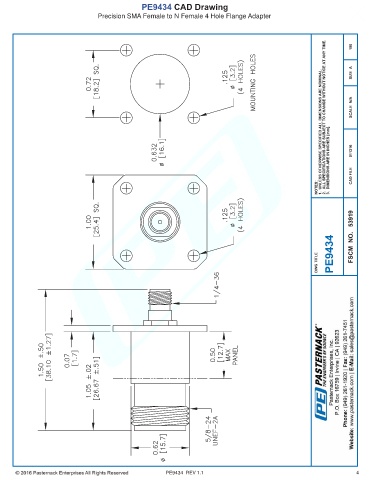 PE9434 CAD Drawing Precision SMA Female to N Female 4 Hole Flange Adapter PE9434 REV 1.1 4