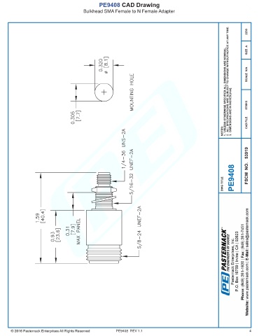 PE9408 CAD Drawing Bulkhead SMA Female to N Female Adapter PE9408 REV 1.1 4