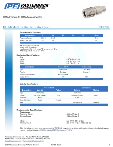 inventory and certifications: SMA Female to QMA Male Adapter PE9786