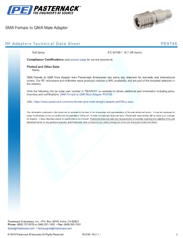 inventory and certifications: SMA Female to QMA Male Adapter PE9786