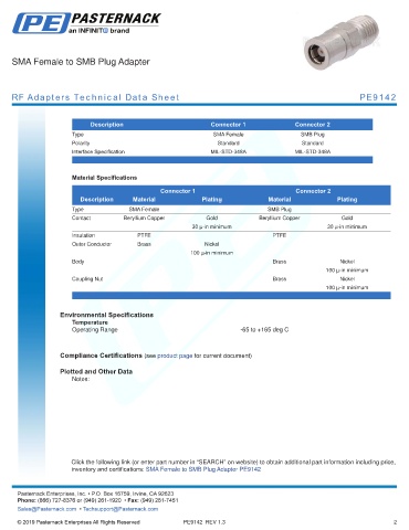 RF Adapters Technical Data Sheet PE9142