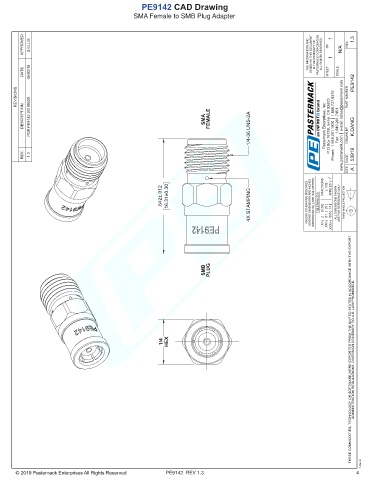 DESCRIPTION PCR PE9142 20190529 SMA FEMALE 1/4-36 UNS-2A Pasternack Enterprises, Inc. P.O.Box 16759, Irvine, CA 92623. Phone: 1.949.261.1920 │ 1.866.727.8376 Fax: 1.949.261.7451 www.pasternack.com │ e-mail: sales@pasternack.com DRAWN BY K.DANG
