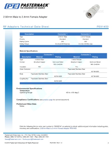 inventory and certifications: 2.92mm Male to 2.4mm Female Adapter PE91450