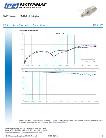 inventory and certifications: SMA Female to SMC Jack Adapter PE9147