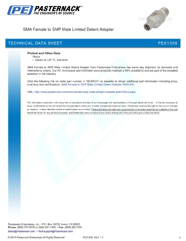 inventory and certifications: SMA Female to SMP Male Limited Detent Adapter PE91306