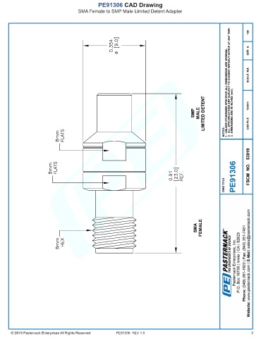 PE91306 CAD Drawing SMA Female to SMP Male Limited Detent Adapter PE91306 REV 1.0 3