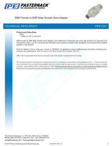 inventory and certifications: SMA Female to SMP Male Smooth Bore Adapter PE91307