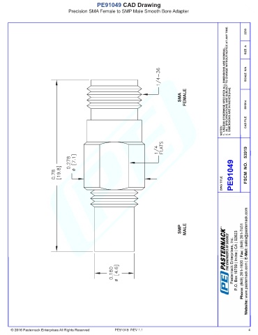 PE91049 CAD Drawing Precision SMA Female to SMP Male Smooth Bore Adapter PE91049 REV 1.1 4