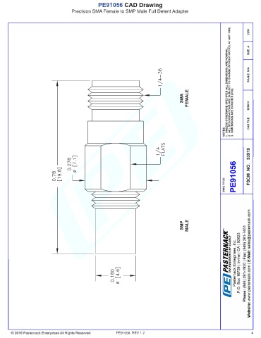 PE91056 CAD Drawing Precision SMA Female to SMP Male Full Detent Adapter PE91056 REV 1.2 4