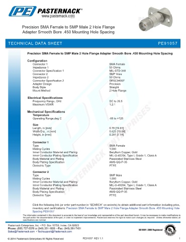 inventory and certifications: Precision SMA Female to SMP Male 2 Hole Flange Adapter Smooth Bore .450 Mounting Hole