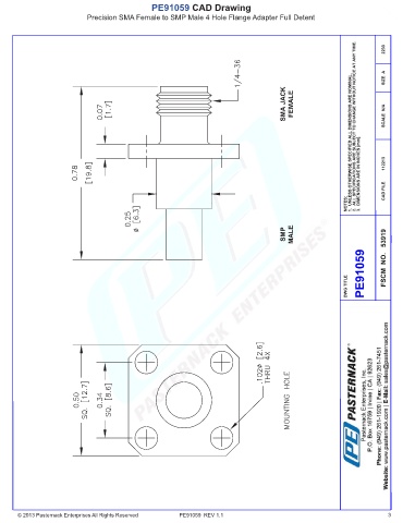 PE91059 CAD Drawing Precision SMA Female to SMP Male 4 Hole Flange Adapter Full Detent © 2013 Pasternack Enterprises All Rights Reserved PE91059 REV 1.1 3