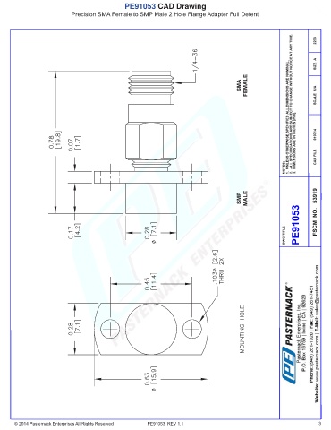 PE91053 CAD Drawing Precision SMA Female to SMP Male 2 Hole Flange Adapter Full Detent © 2014 Pasternack Enterprises All Rights Reserved PE91053 REV 1.1 3