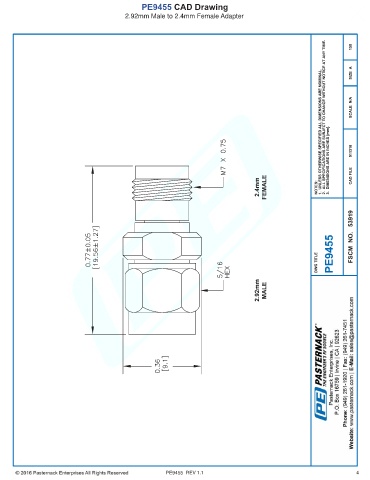 PE9455 CAD Drawing 2.92mm Male to 2.4mm Female Adapter PE9455 REV 1.1 4