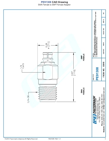 PE91308 CAD Drawing SMA Female to SMP Female Adapter © 2014 Pasternack Enterprises All Rights Reserved PE91308 REV 1.0 3