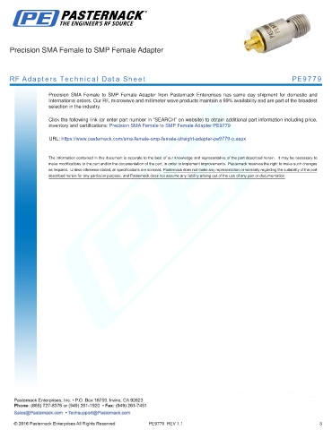 inventory and certifications: Precision SMA Female to SMP Female Adapter PE9779