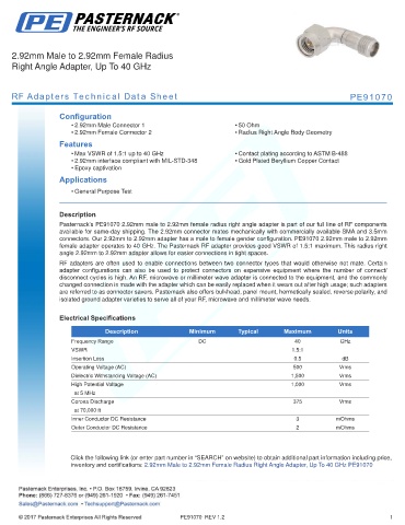 RF Adapters Technical Data Sheet PE91070