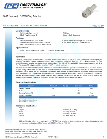 RF Adapters Technical Data Sheet PE91380