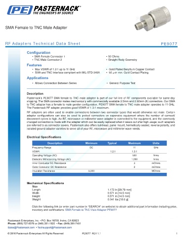 RF Adapters Technical Data Sheet PE9077