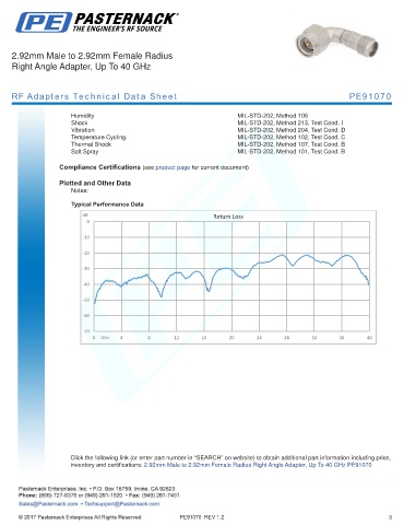 inventory and certifications: 2.92mm Male to 2.92mm Female Radius Right Angle Adapter, Up To 40 GHz PE91070