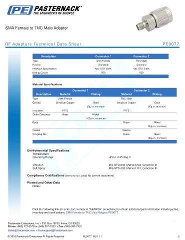 inventory and certifications: SMA Female to TNC Male Adapter PE9077