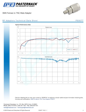 inventory and certifications: SMA Female to TNC Male Adapter PE9077