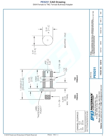 PE9251 CAD Drawing SMA Female to TNC Female Bulkhead Adapter PE9251 REV 1.1 5