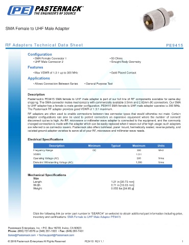 RF Adapters Technical Data Sheet PE9415