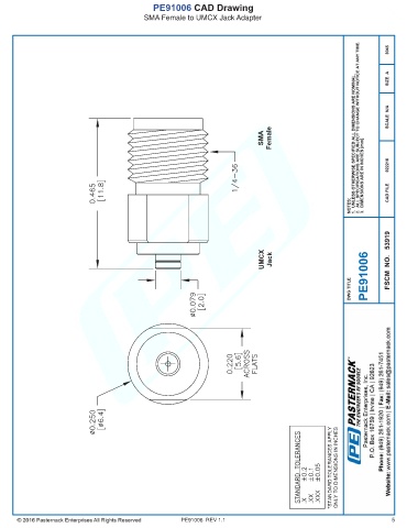 PE91006 CAD Drawing SMA Female to UMCX Jack Adapter SMA Female UMCX Jack PE91006 REV 1.1 5