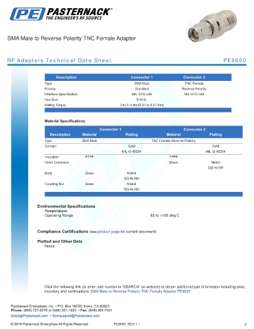 RF Adapters Technical Data Sheet PE9600