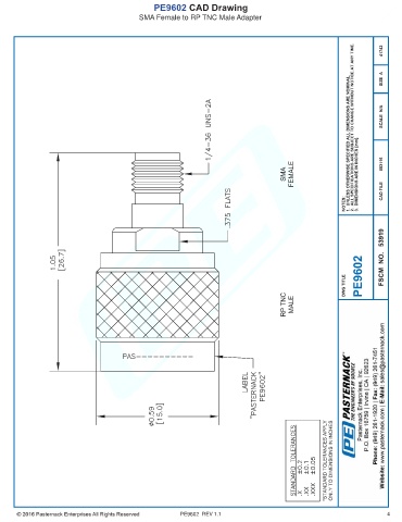 PE9602 CAD Drawing SMA Female to RP TNC Male Adapter PE9602 REV 1.1 4