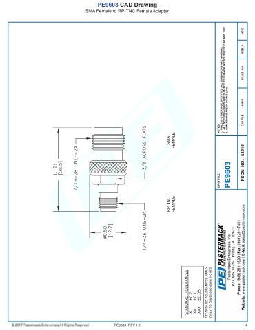 PE9603 CAD Drawing SMA Female to RP-TNC Female Adapter PE9603 REV 1.2 4