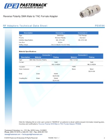 inventory and certifications: Reverse Polarity SMA Male to TNC Female Adapter PE9596
