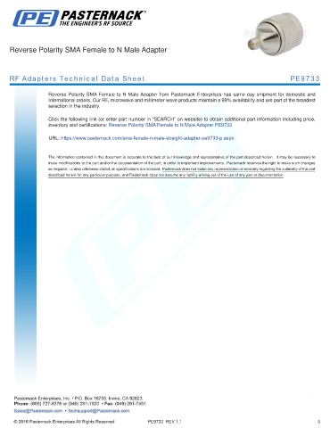 RF Adapters Technical Data Sheet PE9733