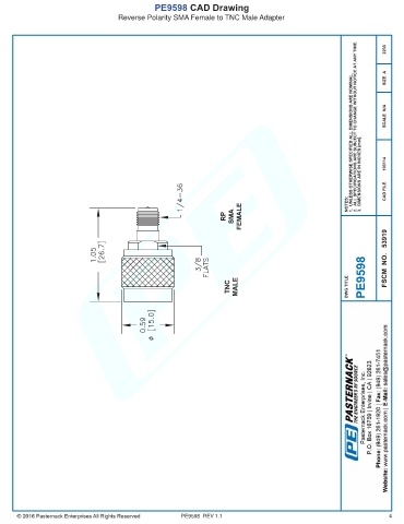 PE9598 CAD Drawing Reverse Polarity SMA Female to TNC Male Adapter PE9598 REV 1.1 4