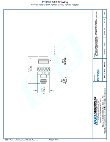 PE9599 CAD Drawing Reverse Polarity SMA Female to TNC Female Adapter PE9599 REV 1.1 4