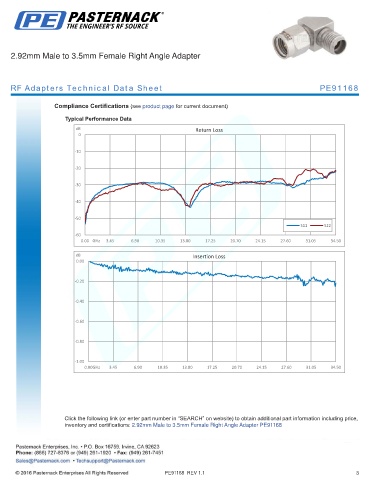 inventory and certifications: 2.92mm Male to 3.5mm Female Right Angle Adapter PE91168