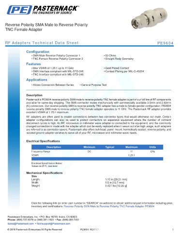 RF Adapters Technical Data Sheet PE9604