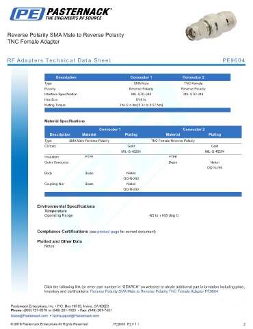 RF Adapters Technical Data Sheet PE9604