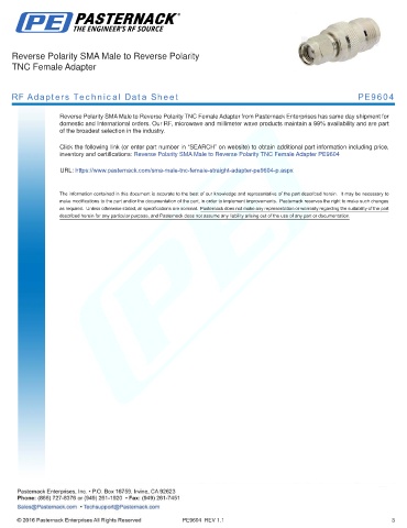 inventory and certifications: Reverse Polarity SMA Male to Reverse Polarity TNC Female Adapter PE9604