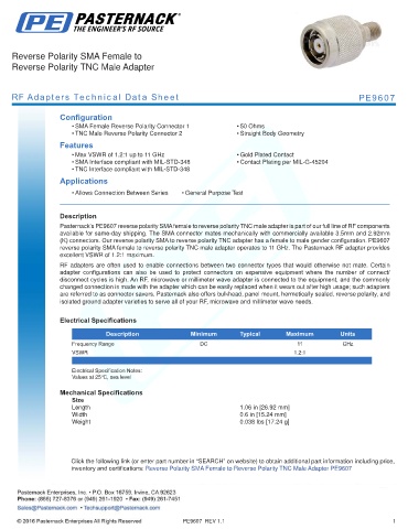 RF Adapters Technical Data Sheet PE9607