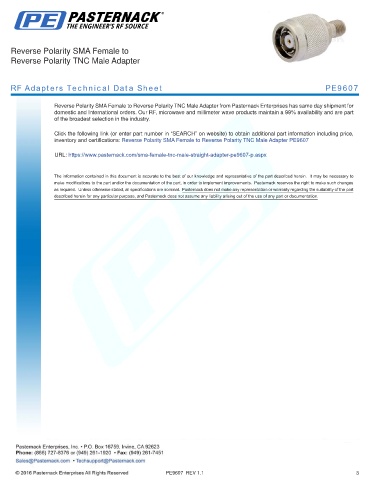 inventory and certifications: Reverse Polarity SMA Female to Reverse Polarity TNC Male Adapter PE9607