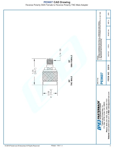 PE9607 CAD Drawing Reverse Polarity SMA Female to Reverse Polarity TNC Male Adapter PE9607 REV 1.1 4