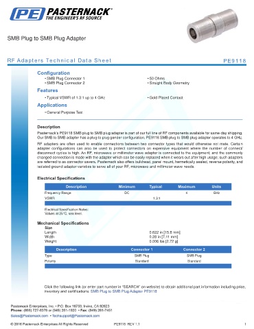 inventory and certifications: SMB Plug to SMB Plug Adapter PE9118