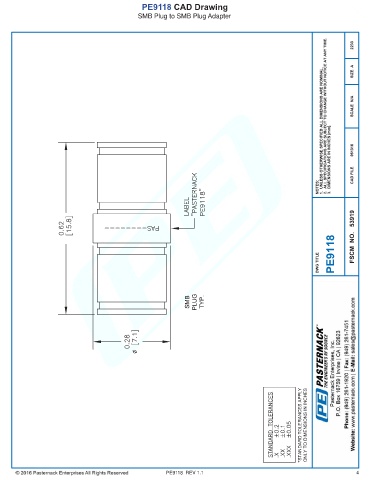 PE9118 CAD Drawing SMB Plug to SMB Plug Adapter PE9118 REV 1.1 4