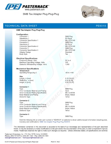 inventory and certifications: SMB Tee Adapter Plug-Plug-Plug PE9310